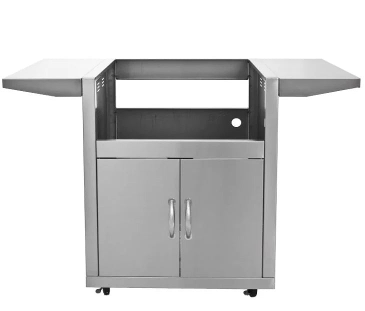 This Blaze stainless steel grill cart is specifically designed to house the Blaze 25-Inch 3 burner gas grill. The two stainless steel side shelves give you a convenient work area while you cook. The Blaze Grills Grill Cart for 25" Grills also features two front doors with rounded handles to access the cabinet below the grill where you can store your propane tank, grill cover and other BBQ accessories.