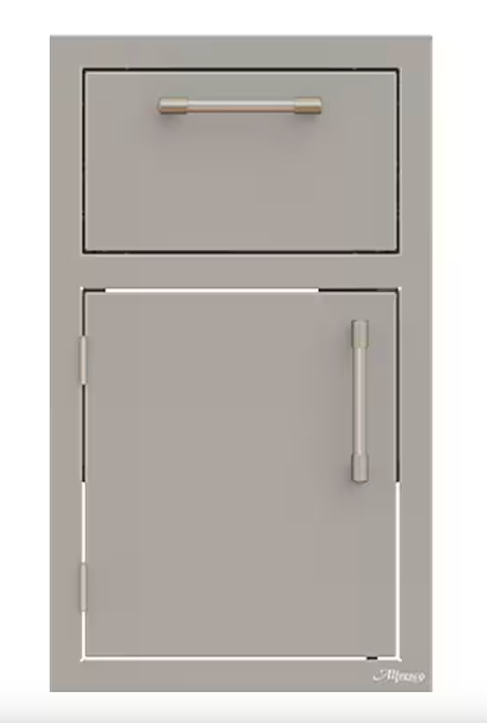 Alfresco offers a complete selection of doors and drawers that provide functional and organized storage perfect for any outdoor kitchen. These convenient and practical outdoor island components feature 304 stainless steel construction, ensuring that they will stand the test of time and endure the elements in any environment. This 17-inch left-hinged door and paper towel holder combo features German engineered soft-close hardware that provides a comfortable feel and reduced stress on moving parts. A right-opening door below and a downward opening paper towel drawer offer a versatile storage solution that is built to last. Double-walled doors feature multiple mounting options in order to fit into any setup. Stamped with the Alfresco logo, you can be assured you are receiving high quality equipment.
