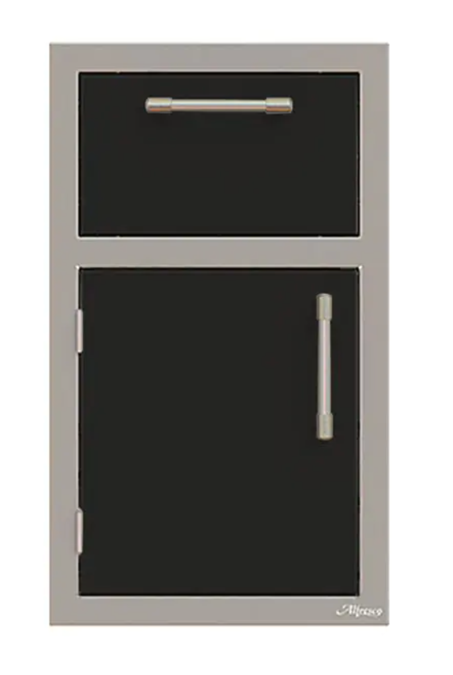 Alfresco offers a complete selection of doors and drawers that provide functional and organized storage perfect for any outdoor kitchen. These convenient and practical outdoor island components feature 304 stainless steel construction, ensuring that they will stand the test of time and endure the elements in any environment. This 17-inch left-hinged door and paper towel holder combo features German engineered soft-close hardware that provides a comfortable feel and reduced stress on moving parts. A right-opening door below and a downward opening paper towel drawer offer a versatile storage solution that is built to last. Double-walled doors feature multiple mounting options in order to fit into any setup. Stamped with the Alfresco logo, you can be assured you are receiving high quality equipment.