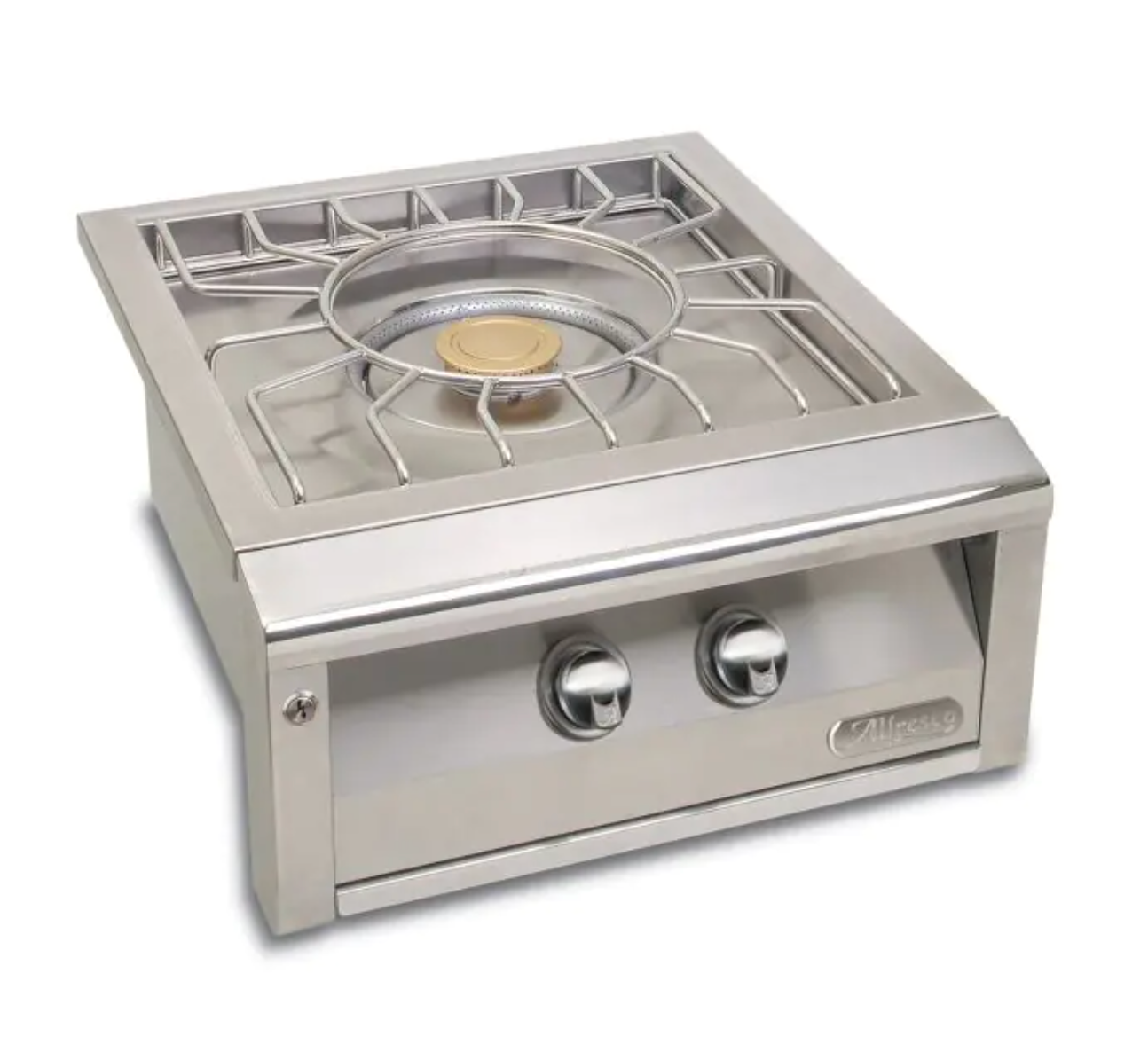 The Alfresco 24-Inch Propane Versa Power Cooking System in Jet Black Matte offers from 400 to 65,000 BTUs of power for total heat control. The specially designed super heavy-duty spider grate will handle the smallest of sauce pans and up to a 100 quart stock pot. It is also ideal for a turkey fryer. Its versatility makes it the perfect complementary appliance to complete your outdoor kitchen. This cooking system features all commercial stainless steel construction with heli-arc welded seams, exclusive dual burner system each with independent controls, removable 5/16-inch diameter electropolished stainless steel spider grate, removable center trivet, user friendly push button ignition system and recessed sealed top for wind protection and to contain spillage. Its lightweight design coupled with a quick-disconnect hose (not included) allows this burner to be easily taken anywhere with you.