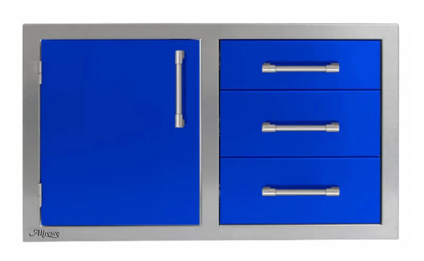 Alfresco 32" Three Drawers w/ Door On Right - Ultramarine Blue-Gloss
