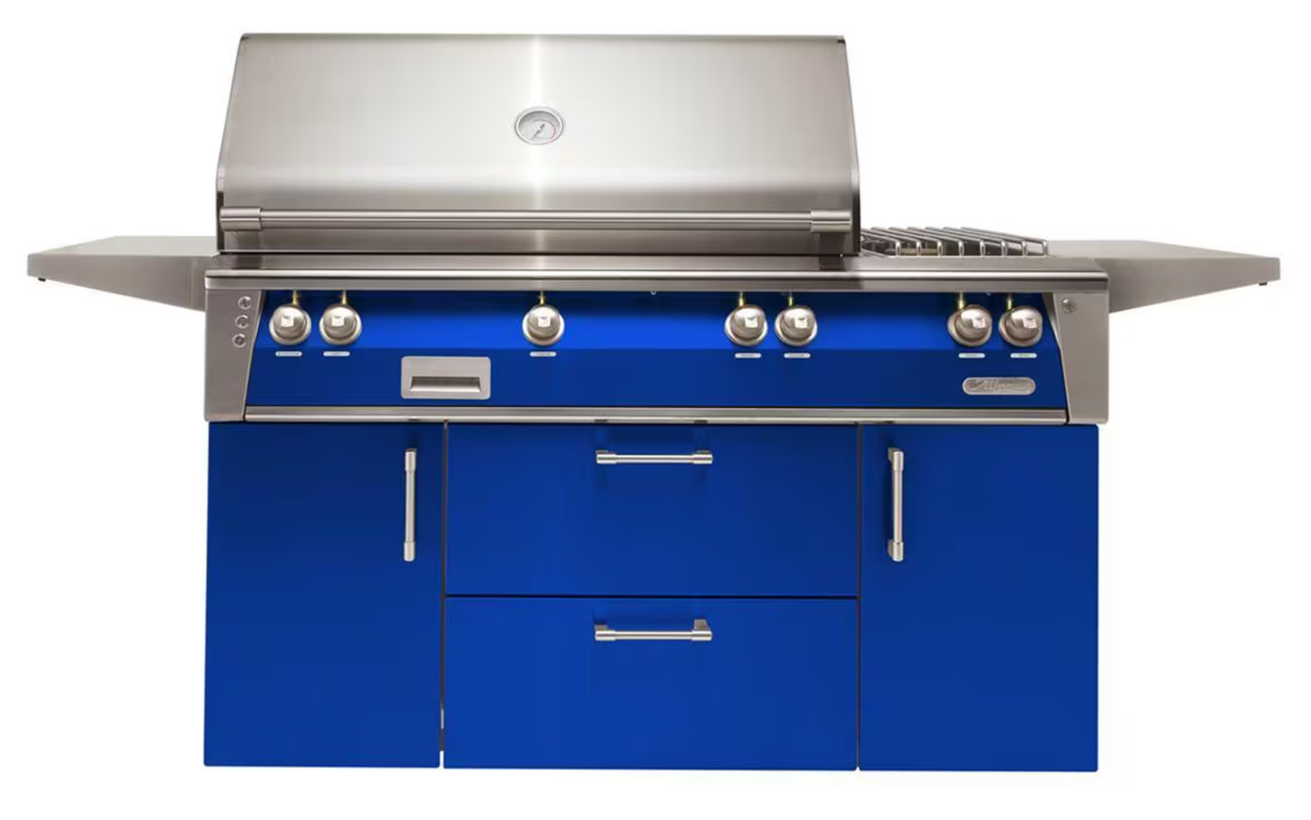 Alfresco 56" Searzone Grill w/ Sideburner Cart - Ultramarine Blue-Gloss