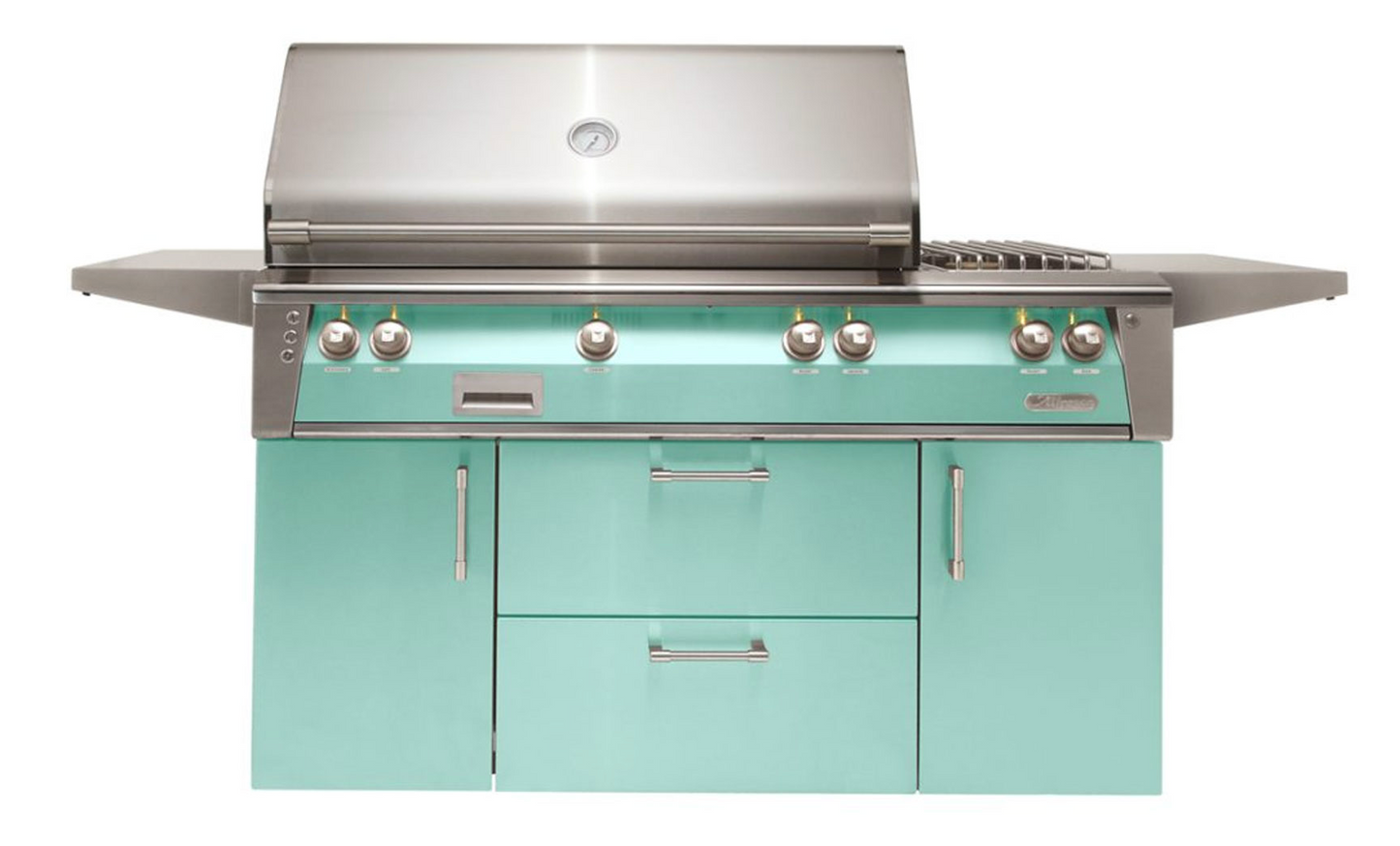 Alfresco 56" Standard Grill w/ Sideburner Cart - Light Green-Gloss