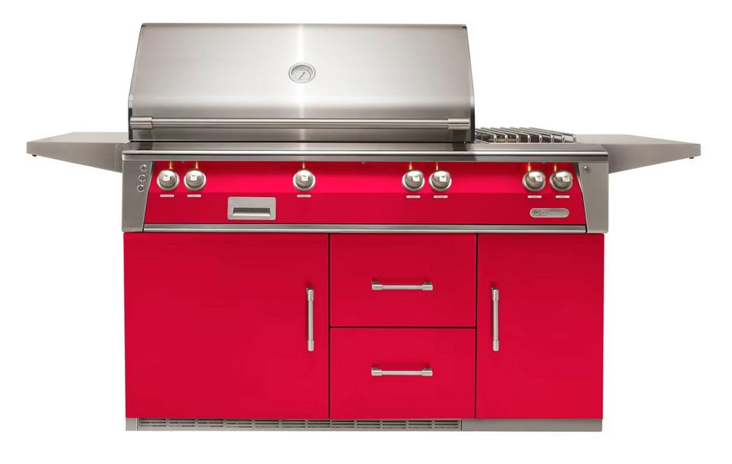 Alfresco Built-In Under Grill Refrigerator on 56" Cart - Raspberry Red-Gloss