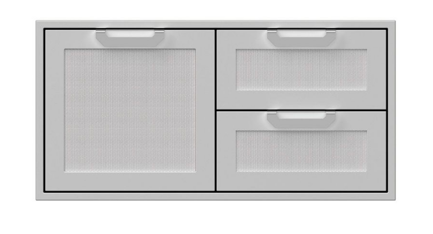 - This door & drawer storage combo features the Steeletto Hestan signature color finish