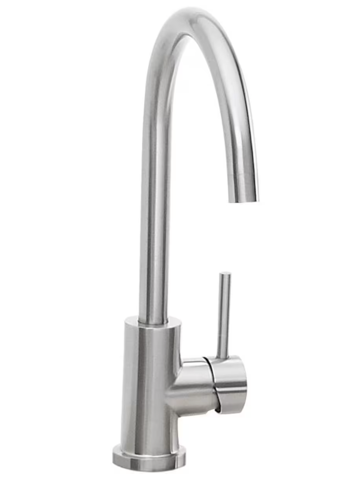 Extraordinary quality and design innovation can be yours with Sedona by Lynx premium outdoor kitchen accessories. The Lynx LFK outdoor faucet is constructed of solid stainless steel and features single level handle for simple operation. The stylish, high-arch design accommodates larger pots and pans for easy cleaning. The faucet has a washerless design, and can be connected to hot and cold water or simply cold only. The LFK faucet is designed for Lynx LSK24 and LSK30 sinks, but also matches well with granite, marble, quartz or concrete countertops.