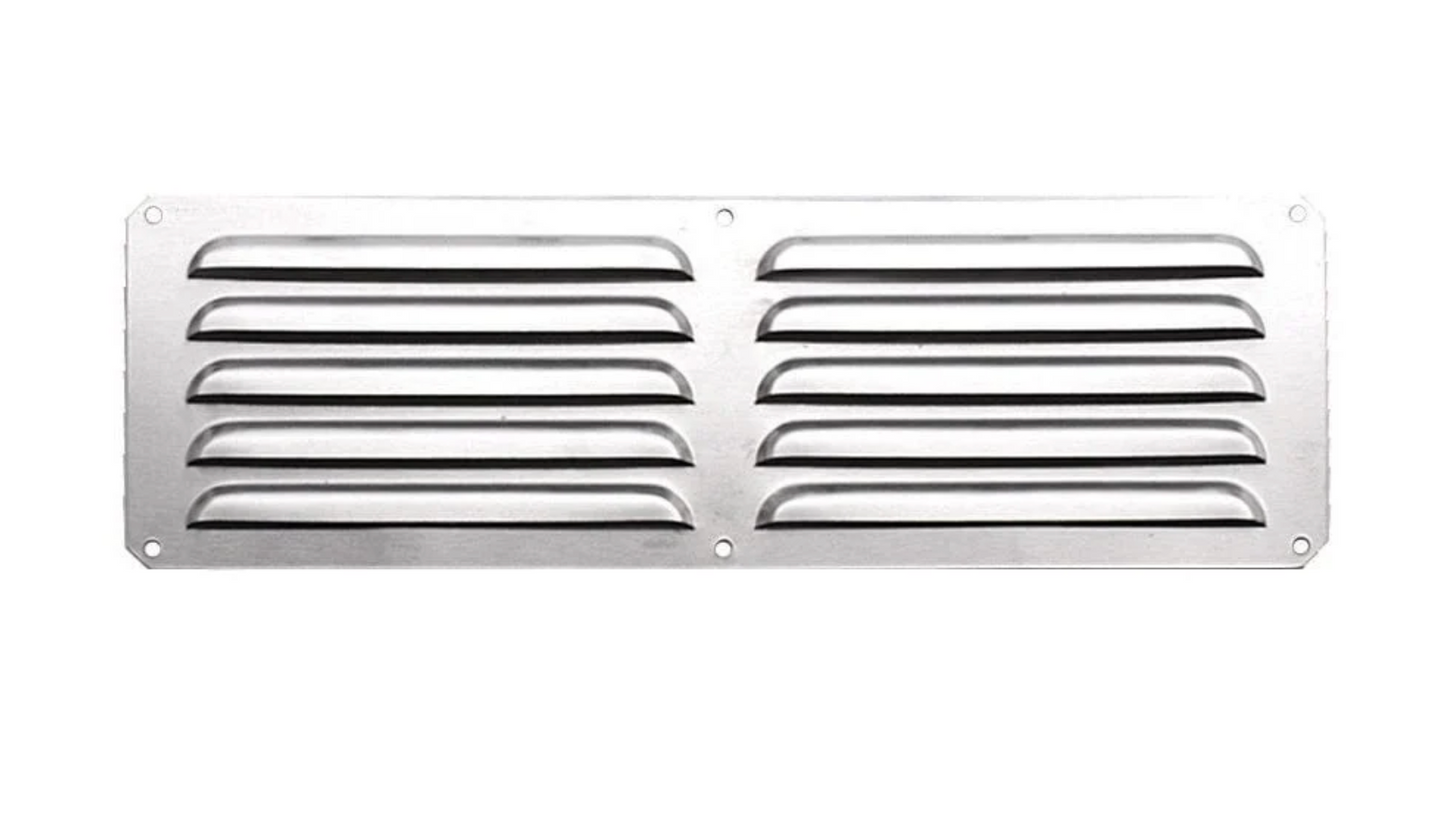 - Creates a clean look and covers ventilation openings in an outdoor kitchen.